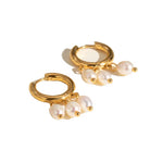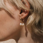 The perfect bohemian and elegant adornment. These earrings feature three freshwater pearl charms on a small hoop earring. This design provides the most beautiful movement.