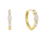 These timeless, yet special huggies feature dainty zircons and dainty opal adornments. To make them even more special and perfect for daily wear, they are a two in one piece. You wear them backwards as the other side of the huggie features pave zircons.